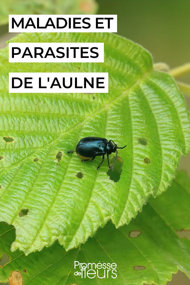 Symptômes : Les chrysomèles adultes grignotent les feuilles, y occasionnant des trous ronds ou ovales. En cas d’attaque sévère, les feuilles prennent alors un aspect de dentelle, car il ne persiste presque plus que les nervures. Les larves de la chrysomèle se nourrissent de la couche superficielle des feuilles : celles-ci se mettent alors rapidement à brunir, présentant un aspect brûlé et sec. Les dégâts sont inesthétiques et affaiblissent l’arbre, mais ne menacent pas directement sa survie. Il tolère dans une certaine mesure ces dommages. Une étude a d’ailleurs montré que les aulnes atteints émettent des hormones de stress et produisent des molécules qui rendent leurs feuilles moins appétentes pour les coléoptères, ce qui limite directement l’infestation. Les aulnes seraient donc capables de se défendre en cas de trop forte attaque.