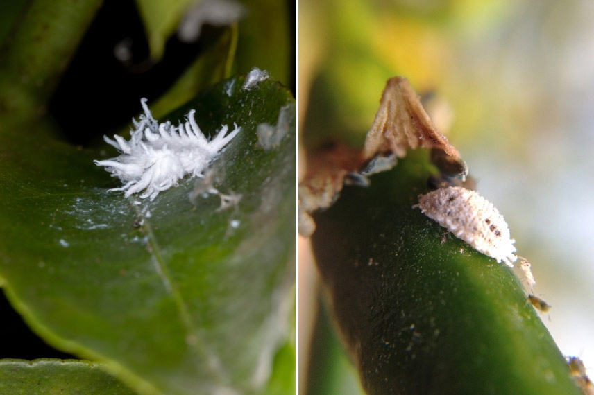 Les cochenilles sont des parasites souvent difficiles à détruire à cause de leur carapace. La plupart des espèces restent immobiles, mais leurs larves se montrent nettement plus véloces. D’autant qu’elles s’installent sur des zones les plus inaccessibles des asparagus, essentiellement sur la face inférieure du feuillage, près de la nervure centrale. Là, elles sucent la sève de l’asparagus qui s’affaiblit.