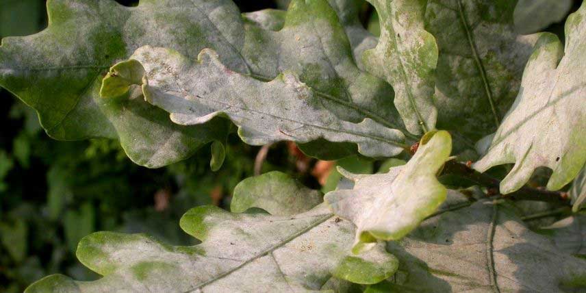 Il s’agit d’une maladie cryptogamique, causée par un champignon. L’oïdium est inesthétique, mais ne menace pas la vie de la plante. Il est favorisé par l’humidité, les atmosphères confinées et les écarts de température importants entre le jour et la nuit.