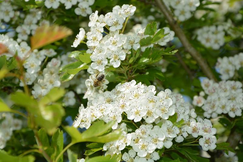 Les aubépines sont de petits arbres ou de grands arbustes très épineux caractéristiques des haies champêtres dans les paysages de bocage. La floraison a lieu courant mai. Leurs fleurs blanches très parfumées sont également très mellifères et produisent nectar et pollen en quantité.