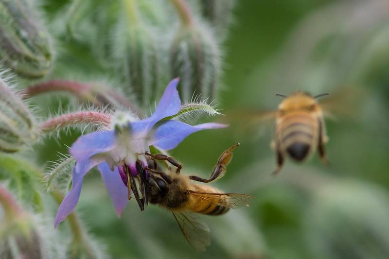 La bourrache est une annuelle très mellifère qui exerce une attraction irrésistible sur les abeilles. Les fleurs produisent une grande quantité de nectar. Elle se ressème facilement, fleurit dès mai-juin et la floraison se prolonge jusqu’aux gelées.