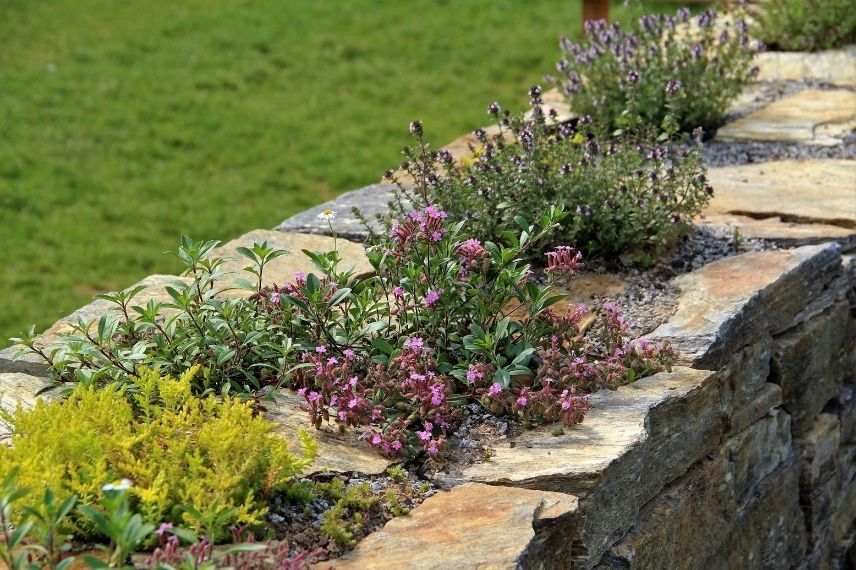 - Les vivaces de rocaille retrouvent dans un muret des conditions adaptées, et certaines vivaces couvre-sol font également de très bons sujets pour cet usage. Citons les géraniums vivaces pour rocailles, les hélianthèmes, les Népétas, les Sedums, l’Iberis, les Phlox mousse (Phlox subulata), les Euphorbes ou encore la Sabline.