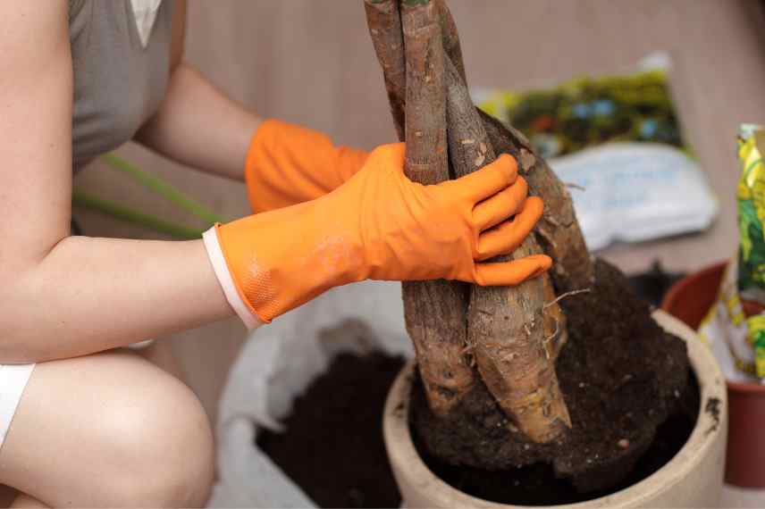 C’est aussi la période idéale pour effectuer un rempotage qui a lieu tous les 2 à 3 ans. Si le Pachira peut atteindre près de 20 mètres de hauteur dans son milieu d’origine, il se contente généralement de 2 à 3 mètres en intérieur. Si son pot devient trop étroit (racines qui sortent par les trous de drainage ou au-dessus du substrat), c’est qu’il est temps de le rempoter dans un contenant de taille supérieure. Choisissez toujours un modèle troué, afin que l’eau en excès puisse s’écouler sans stagner dans les racines. Utilisez un substrat bien drainé et aéré : vous pouvez utiliser du terreau spécial plantes d’intérieur ou du terreau polyvalent mélangé à des éléments drainants (billes d’argile, sable de rivière, graviers, etc.). Pensez aussi à installer une couche drainante au fond du contenant. Les années sans rempotage, effectuez simplement un surfaçage, en remplaçant les 3 premiers centimètres de terre par du terreau neuf.