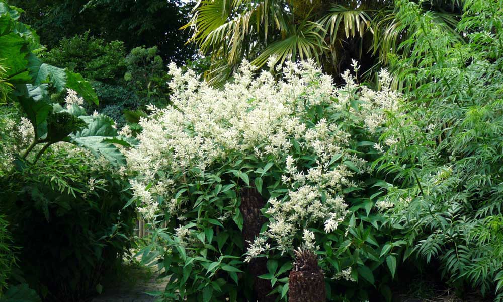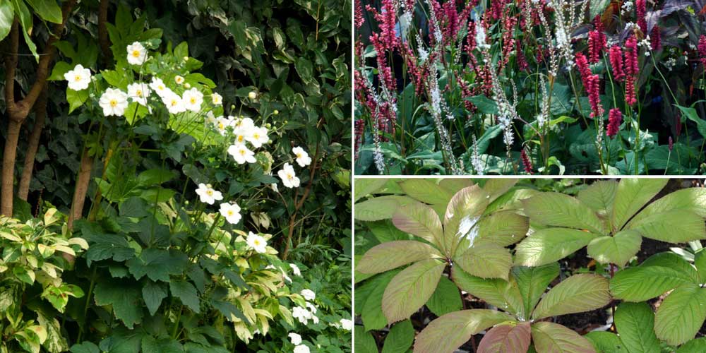 La persicaire s’intègre très bien dans un jardin en lisière de sous-bois, un emplacement à la fois frais et ombragé. Choisissez de préférence des variétés à fleurs blanches : elles éclairciront le massif ombragé et créeront un joli contraste. Vous pouvez les marier aux fleurs blanc pur des anémones du Japon (comme celles de la variété ‘Honorine Jobert’). Ajoutez quelques plantes aux feuillages décoratifs : fougères, hostas ou rodgersia. Et, devant elles, un tapis de nombreuses fleurs basses, par exemple des jacinthes des bois ou cyclamens.
