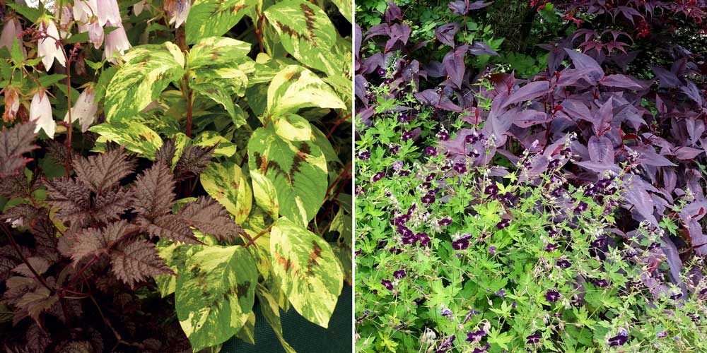 Certaines persicaires offrent de superbes feuillages panachés… profitez-en ! Utilisez par exemple le feuillage vert et blanc de Persicaria virginiana ‘Variegata’ pour apporter de la luminosité à un massif ombragé. Quant à Persicaria runcinata ‘Purple Fantasy’, ses feuilles triangulaires créent immédiatement une ambiance très graphique ! Leurs tons chauds et contrastés permettent de l’intégrer dans un massif exotique. Vous pouvez aussi composer une belle scène pourpre qui associe la teinte sombre de Persicaria microcephala ‘Red Dragon’ et la floraison de Geranium phaeum. Plantez-les à l’ombre, sous des arbres, en groupes assez importants. Vous pouvez les accompagner de quelques hostas ou fougères.