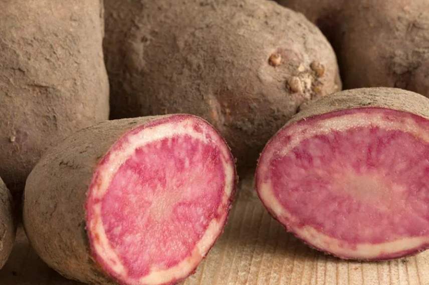 Très atypique, cette pomme de terre se distingue par ses tubercules oblongs à la chair ferme, non farineuse, délicieuse en purée, à la vapeur ou sautée. C’est également une pomme de terre qui se prête très bien à la confection de chips ou de frites. Pour conserver la couleur bleue à la cuisson, il suffit d’ajouter à l’eau quelques gouttes de vinaigre. En revanche, à la friture, la couleur persiste plus facilement.