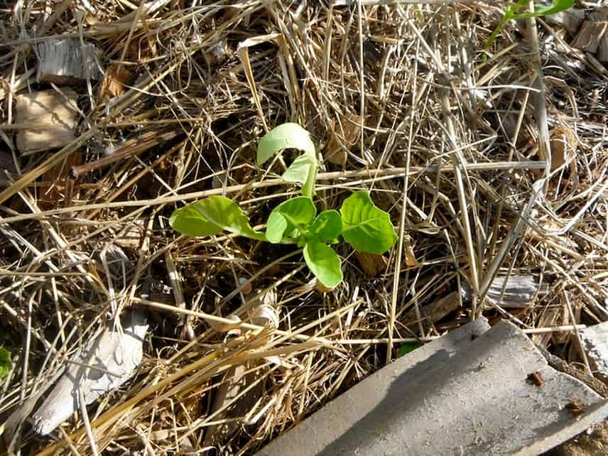 - La première solution la plus accessible reste le paillage. Et vous pouvez vous lâcher ! Plus le paillage sera épais, plus il sera efficace pour retenir l’humidité, fertiliser le sol mais aussi limiter la pousse des adventices qui sont de grandes consommatrices d’eau, au détriment de vos légumes. Un paillage organique d’au moins 5 cm (plus si vous pouvez !) va être épandu. Pour qu’il soit utile, mélangez de la paille, des résidus de tonte secs, riches en azote, de petites branches broyées type BRF (Bois raméal fragmenté), des paillettes de lin ou de chanvre, des frondes de fougères… Avant d’installer votre paillis, pensez à biner le sol pour supprimer toutes les « mauvaises herbes » indésirables.