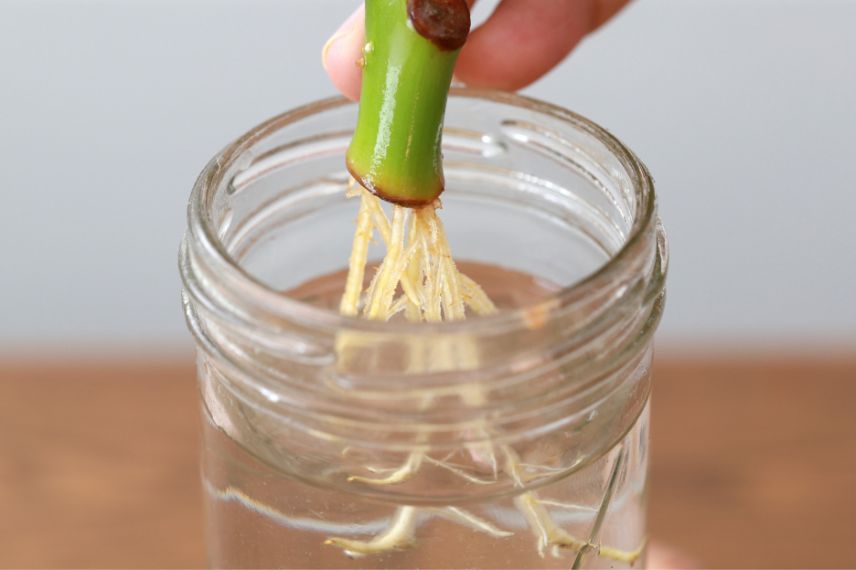 - Supprimez les feuilles du bas afin qu’aucune partie végétale ne trempe dans l’eau.