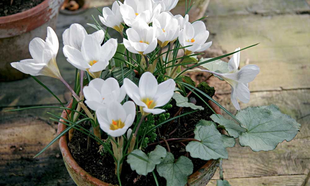Même sans jardin, vous pouvez cultiver vos crocus en les installant dans des pots ou jardinières que vous laisserez à l’extérieur. Profitez-en pour fleurir une terrasse ! Pour les accompagner, choisissez d’autres bulbes printaniers, comme les muscaris, chionodoxas ou narcisses nains. Réalisez de superbes compositions en les associant à des primevères et au feuillage coloré des heuchères ! Plantez-les de préférence dans des pots en terre : ils respirent et limiteront les risques de pourriture auxquels les bulbes sont sensibles.