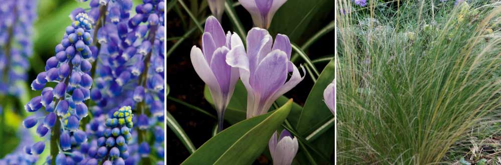 Associez les crocus à des bulbes printaniers comme les jacinthes ou tulipes. Lors de la plantation, vous pouvez superposer plusieurs couches de bulbes en choisissant des fleurs qui se plantent à différentes profondeurs !