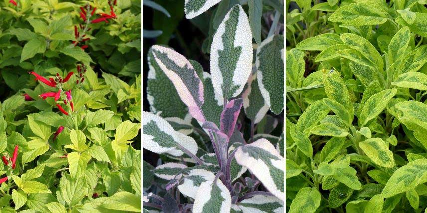 Avec près de 1000 espèces et de nombreuses variétés horticoles, les sauges constituent un groupe de plantes très diversifié. La Sauge officinale, appréciée en cuisine, est l’une des plus connues, mais il existe aussi une multitude de variétés ornementales qui s’intègrent facilement au jardin, dans des massifs de vivaces. Elles offrent en général des fleurs colorées (bleu, violet, blanc, rose, rouge, jaune…), rassemblées en épis, et un feuillage aromatique. La plupart se plaisent au soleil et en sol plutôt sec, bien qu’il existe aussi des variétés pour sol frais ou pour l’ombre.