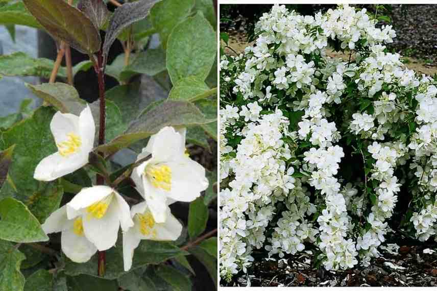 Philadelphus coronarius, ‘Lemoinei Avalanche’ (photo : L. Enking), et ‘Innocence’