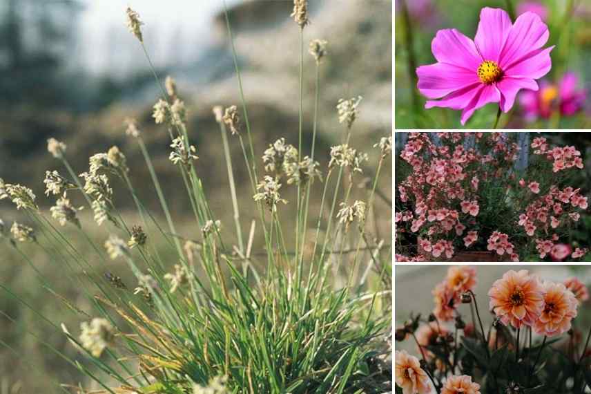 Sesleria caerulea, Cosmos, Diascias et Dahlias
