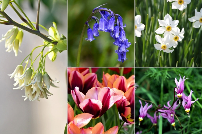 Avec des bulbes et vivaces à floraison printanière
