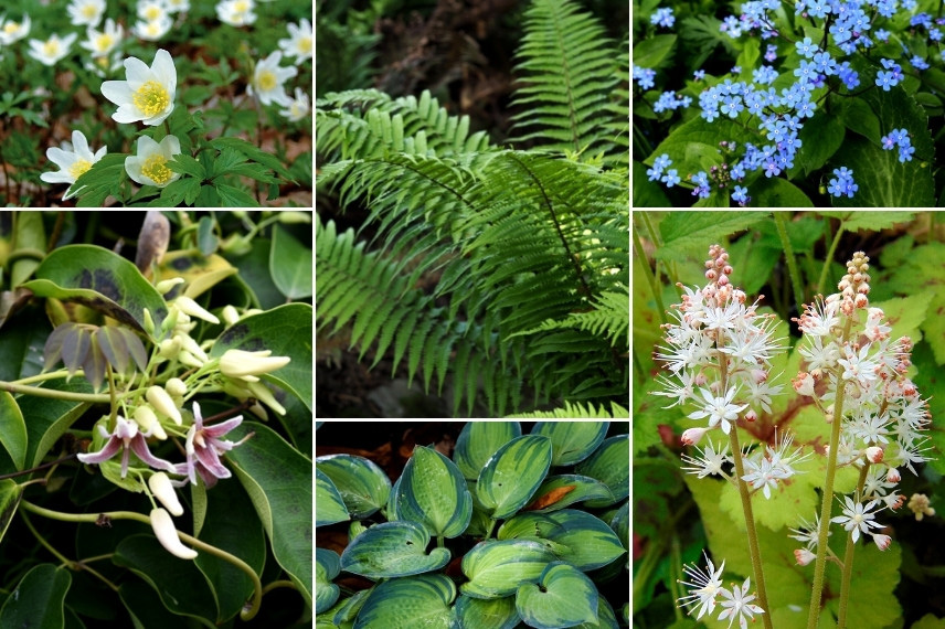 Le Stauntonia est une plante grimpante originaire des forêts d’Asie de l’Est, et qui trouvera facilement sa place dans un jardin de sous-bois, où son feuillage luxuriant amènera un style très naturel. Vous pouvez le faire grimper sur un arbre, par exemple aux côtés de lierres panachés et de petites vivaces d’ombre. Pensez au feuillage décoratif des hostas, hakonechloa et fougères. Jouez sur les couleurs avec le feuillage des heuchères, qui se décline dans une grande variété de teintes ! Découvrez aussi le superbe Fatshedera lizei ‘Variegata’, un hybride entre le lierre et le Fatsia, qui offre un feuillage panaché ! Pour ce qui est des floraisons, les petites clochettes du Stauntonia se marieront à merveille avec la floraison délicate du Sceau-de-Salomon, du Brunnera, des Epimediums, de l’aspérule odorante, des pulmonaires, ail des ours et consoudes. Pensez aussi aux petites fleurs jaunes de la primevère officinale, Primula veris, idéale pour amener de petites touches de luminosité. Ces plantes créeront ensemble une scène harmonieuse digne d’une véritable forêt naturelle, mais néanmoins un peu plus fleurie.
