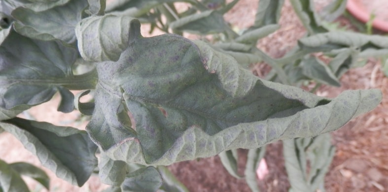 Il arrive que les feuilles de tomates s’enroulent sur elle-même, montrant ainsi leur revers. Relativement fréquent, ce phénomène n’est pas très grave, mais traduit un stress du plant de tomate. Celui-ci peut être provoqué par de nombreux facteurs : un virus souvent sans gravité, des fertilisations azotées trop importantes, de fortes chaleurs (les températures montent vite sous abri), des arrosages trop irréguliers ou un sol trop compact, asphyxiant.