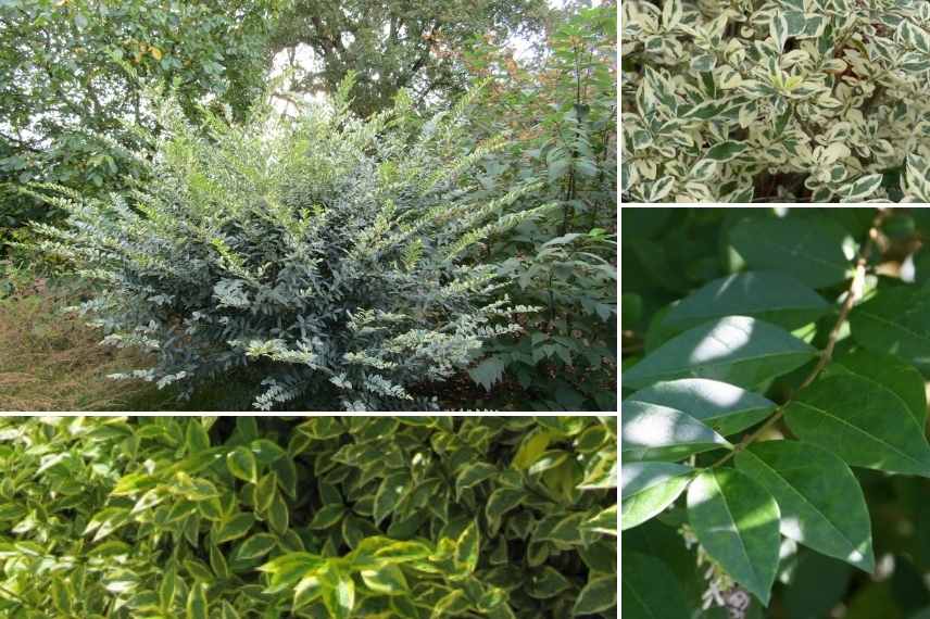 Feuillage semi-persistant : Ligustrum ibota, Ligustrum ovalifolium, Ligustrum sinense, Ligustrum vulgare, Ligustrum obtusifolium, Ligustrum vicarayi…