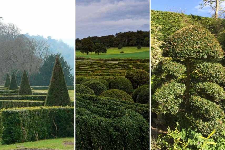 Troènes taillés de formes différentes : haies basses et cônes, boules et labyrinthes, ou en topiaire japonisante sous forme de taille en “Niwaki”