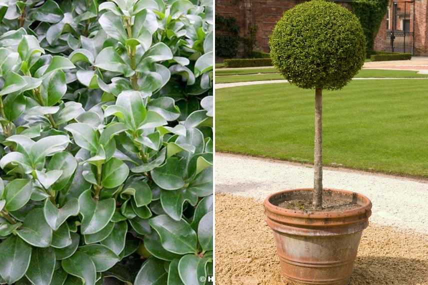 Pour cet usage spécifique, le troène de Californie (Ligustrum ovalifolium) ou le troène japonais (Ligustrum japonicum) sont tout indiqués avec leurs petites feuilles persistantes. On pourra également utiliser Ligustrum delavayanum.