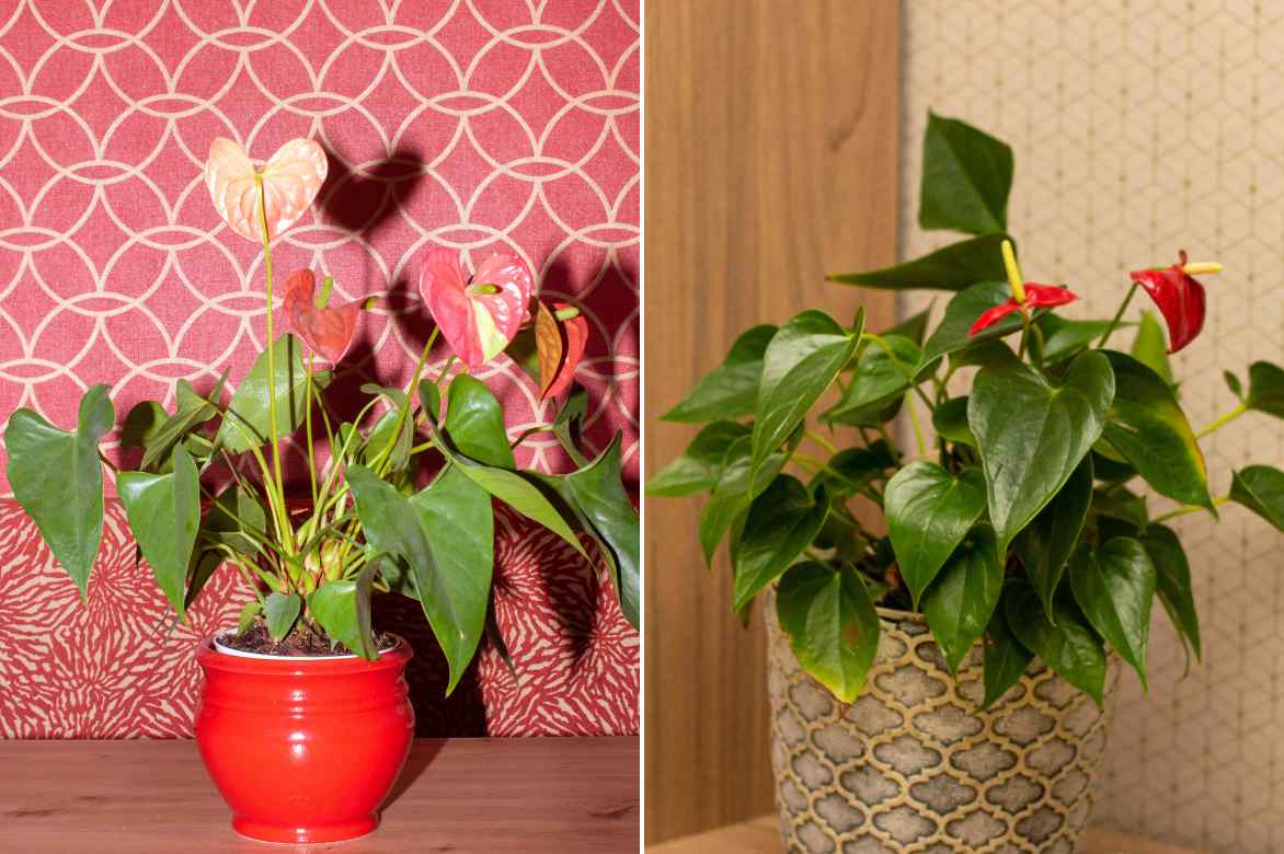 Tout en harmonie dans son pot et un papier peint, ou dans des décorations sobres, l’Anthurium trouvera partout sa place
