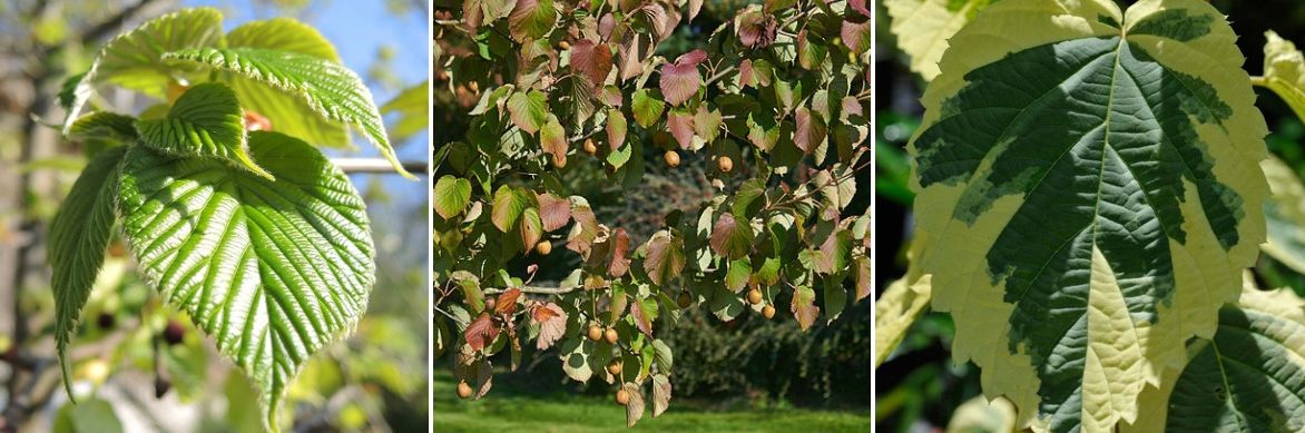 Feuillages d’arbres aux mouchoirs : Davidia involucrata au printemps, feuillage d’automne, feuillage panaché du Davidia involucrata ‘Lady Sunshine’
