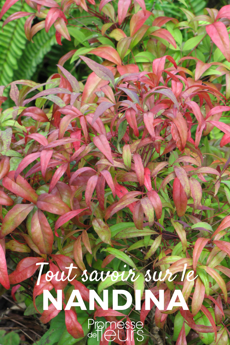 - Le nandina ou “Bambou sacré” est un arbuste au feuillage persistant remarquable, changeant au fil des saisons passant du rouge au vert pour finir pourpre
