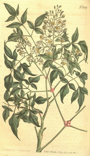 Ce feuillage léger évoquant celui du bambou a valu au Nandina, le nom commun de « bambou sacré » ou « bambou merveilleux ».