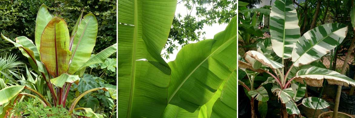 Ensete ventricosum ‘Maurelii’ / Musa basjoo (photo David J. Stang) / Le feuillage panaché du Musa x paradisiaca ‘Ae Ae’ (photo Mokkie)