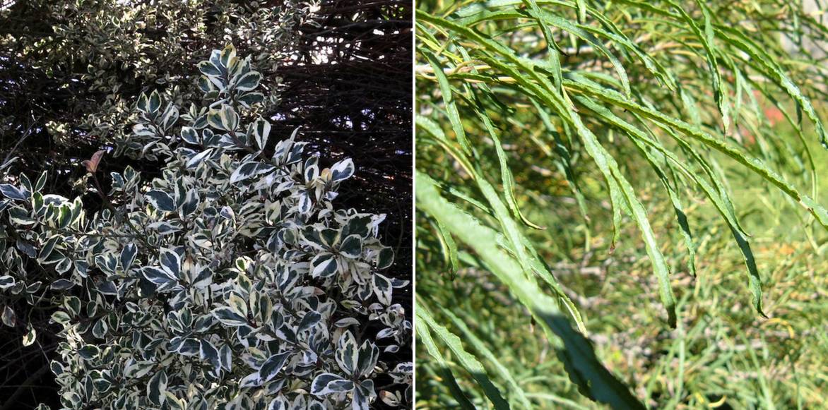 Feuillages de Nerprun : Rhamnus alaternus ‘Argenteovariegata’ (Photo Gartenknorze), Rhamnus frangula ‘Asplenifolia’ (photo Jonathan Landsman).