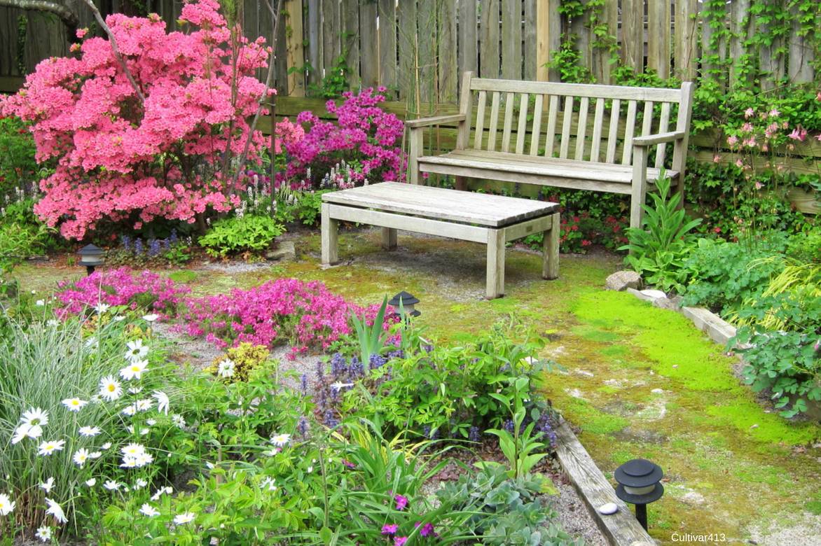 Un exemple d’association : Leucanthemum vulgare, Tradescantia, Pholx subulata ‘Scarlet Flame’, Ajuga, Tiarella ‘Spring Symphony’, Azalea ‘Kirin’ et ‘Herbert’, Aquilegia vulgaris.