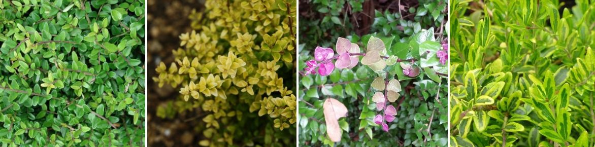 - Ces arbustes faciles de culture sont intéressants pour leurs petites feuilles persistantes luisantes parfois dorées ou panachées, en haie ou comme couvre-sol.