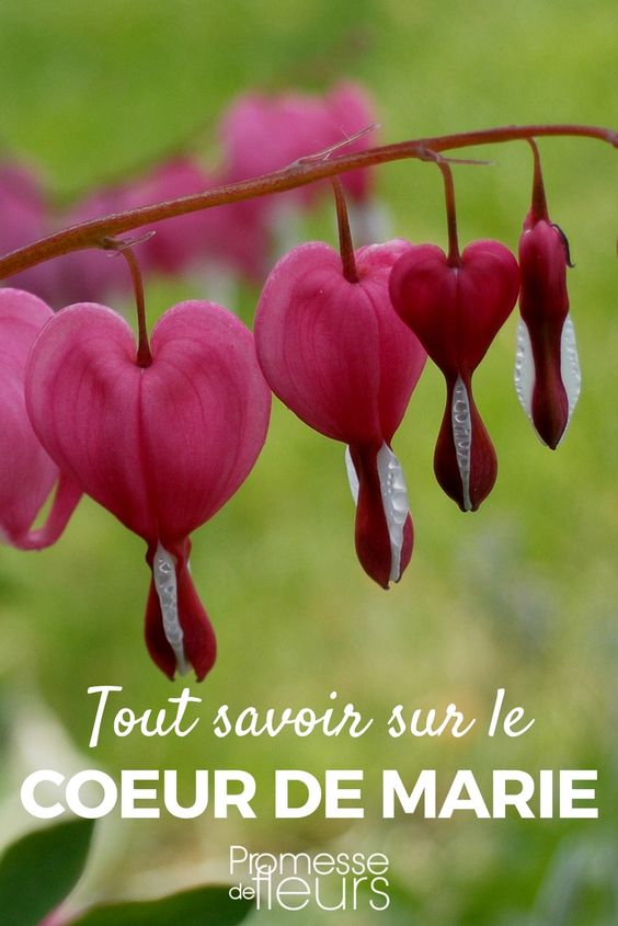 Le Cœur de Marie ou encore Cœur saignant, désormais rencontré sous l’appellation Lamprocapnos spectabilis, est une plante vivace au luxuriant feuillage finement découpé vert tendre ou gris-bleuté, remarquable par sa floribondité. Ses fleurs comptent parmi les plus gracieuses des fleurs printanières. Si Dicentra spectabilis est le plus emblématique, Dicentra formosa et Dicentra eximia, sont deux belles espèces couvre-sol dont le feuillage ciselé et léger évoque celui de la fougère ou du cerfeuil.