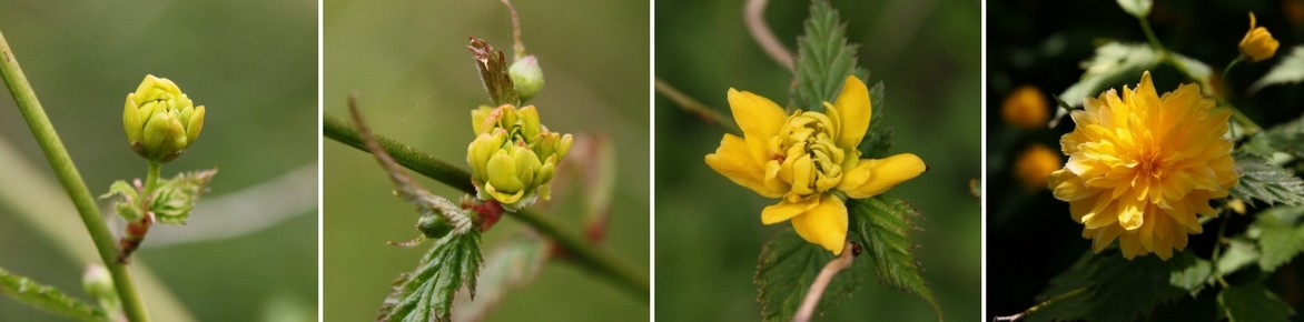 L’espèce type kerria japonica qui n’est quasiment plus cultivée, a donné naissance à quelques cultivars intéressants dont ‘Pleniflora’ qui est le plus répandu, ‘Golden Guinea’ ou encore ‘Picta’.