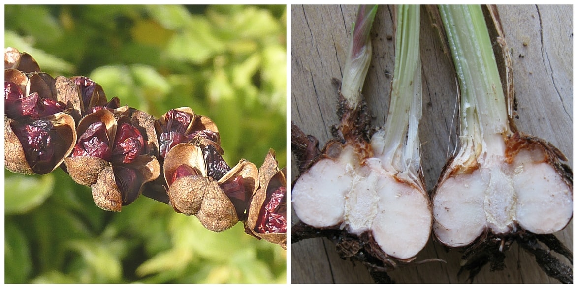 À l’automne, pour passer la mauvaise saison, la plante forme des cormes, genre de bulbes arrondis et aplatis. Ils permettent à la plante de constituer des réserves et de redémarrer au printemps. C’est une tige renflée, protégée par de petites écailles.
