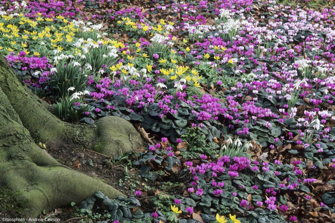 - Les cyclamens se naturalisent facilement pour former de beaux tapis colorés