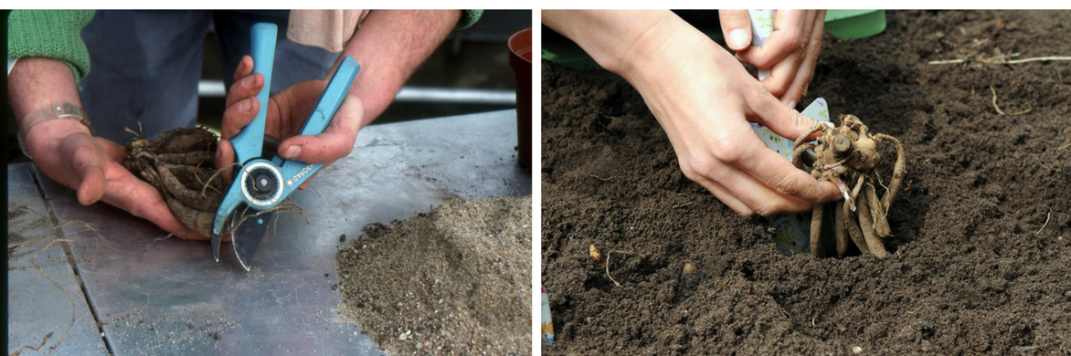 - Au printemps, fin mars, prenez les racines ayant hiverné en réserve