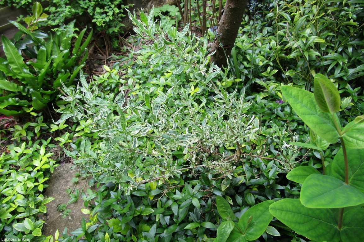 Arbuste compact, aux feuilles vertes panachées de blanc, très rustique il garnit les zones d'ombre de votre jardin.
