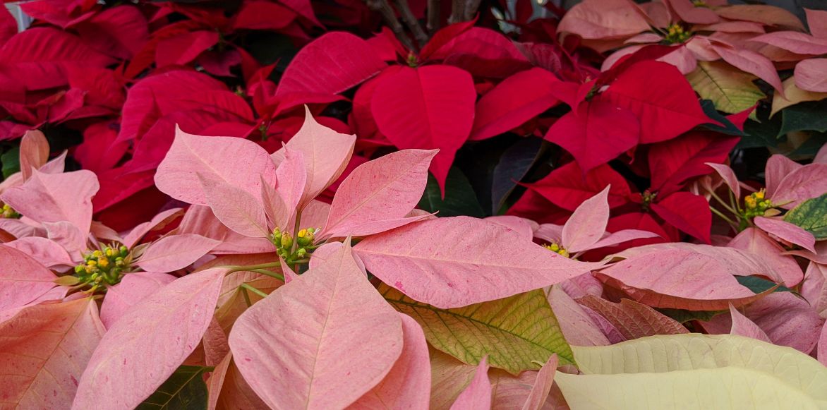 Il existe désormais un large choix dans les variétés de Poinsettia : rouge, rose, blanc…