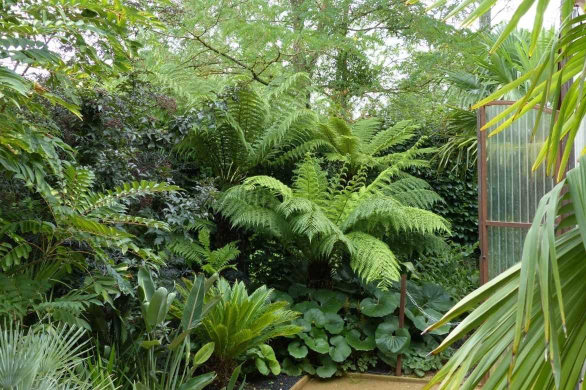 Sous quelques arbres disposant une ombre bienfaitrice, votre jardin vous offre une terre très humifère. De plus, une pièce d’eau non loin de là dispense une humidité agréable dans l’atmosphère mais aussi au niveau du sol. C’est l’endroit parfait pour accueillir une Farfugium japonicum ‘Gigantea’ aux grosses feuilles un peu exotiques. Pourquoi ne pas l’accompagner de belles fougères arborescentes, dont les frondes découpées contrasteront fortement avec le feuillage de la plante panthère. Accompagnez-les d’un Cycas revoluta et d’un Sureau au feuillage pourpré pour apporter un peu de contraste dans tout ce vert.