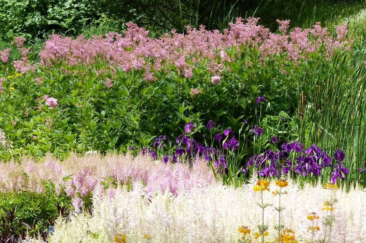 Elle offre au cœur de l’été, une extraordinaire floraison en plumeaux vaporeux de fleurs blanches, rouges ou roses qui culminent pour certaines filipendules à près de 2 m de haut.