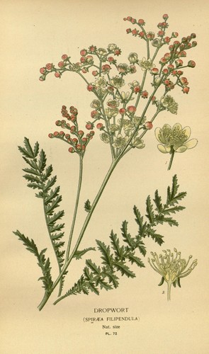 Filipendula vulgaris (= Spirea filipendula) – illustration botanique.