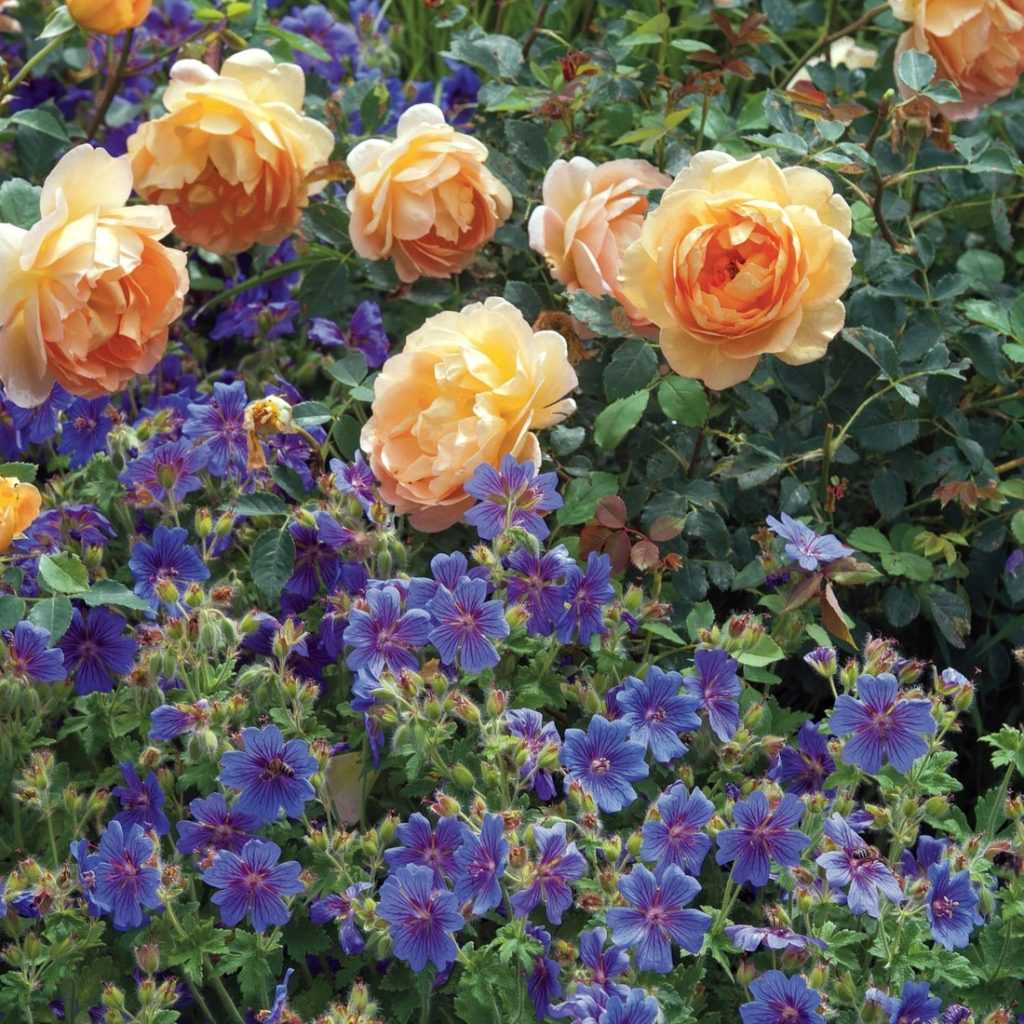 Avec sa généreuse floraison et son feuillage décoratif, le géranium vivace trouve facilement sa place dans un mixed-border coloré, typique des jardins à l’anglaise ! Ses teintes douces y apportent un côté naturel et romantique. Il s’associe à merveille avec les rosiers, habillant délicatement leur pied souvent dégarni. Les couleurs des géraniums et rosiers s’harmonisent parfaitement ! Il limitera aussi l’entretien et la nécessité de désherber à leur pied. De la même façon, le géranium vivace est un bon couvre-sol qui apporte de la couleur au pied des arbres et arbustes.
