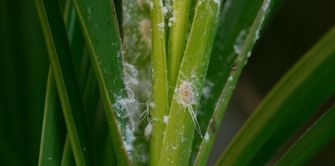 Les cochenilles farineuses peuvent s’installer sur la base des feuilles ou le long des pétioles, sous forme de petites masses blanchâtres cotonneuses. Elles affaiblissent la plante en suçant la sève. Il est possible de les retirer manuellement avec un coton imbibé d’alcool à 70°, puis de traiter avec de l’huile végétale insecticide.