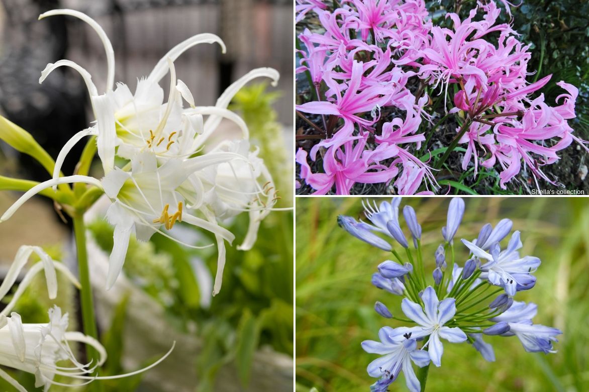 Les Lis Araignée se plaisent également bien au jardin, en pleine terre. Vous pouvez-les accompagner de Nérines ou d’Agapanthes. Pour ces dernières, privilégiez des fleurs bleues qui contrasteront joliment avec les fleurs blanches des Lis Araignée.