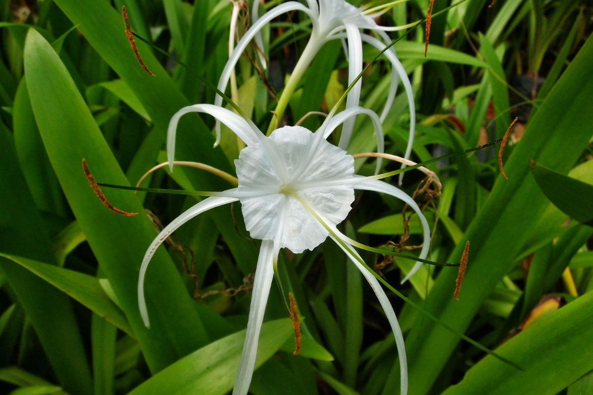 Les Lis Araignée sont des plantes bulbeuses aux magnifiques fleurs. De couleur blanche ou parfois jaune, elles exhalent un délicieux parfum. Mais leur plus grand atout est la forme étonnante et véritablement unique de leur fleur : les 6 longs et étroits pétales dessinent comme une araignée à l’extrémité de longues tiges florales.