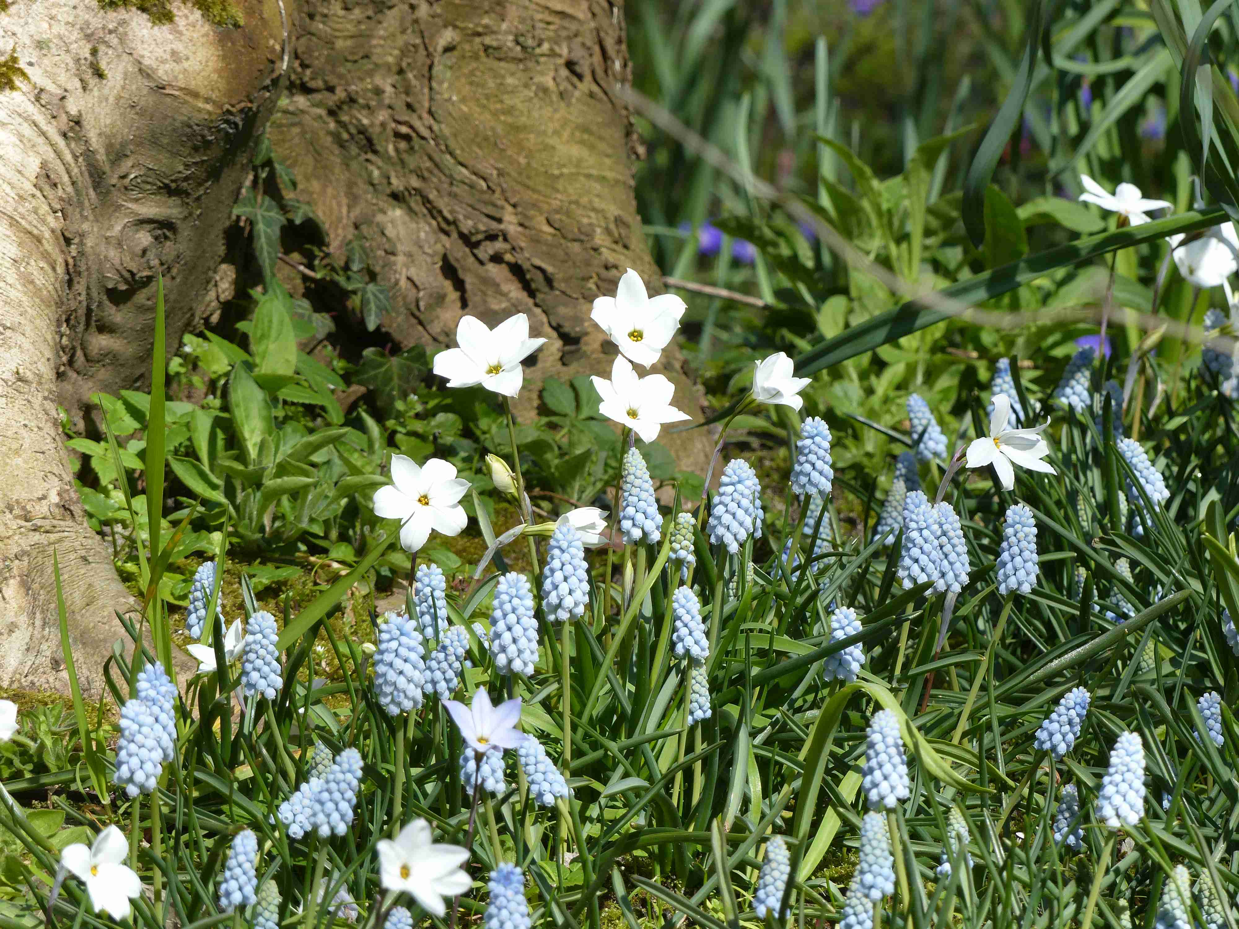 Plantés en nombre, ces mini bulbes composent des tapis très florifères bleus, blancs ou même mauves aux côtés d’autres bulbes printaniers à naturaliser comme les Narcisses, Jonquilles, Muscaris, les Perce-neige, les Tulipes botaniques, Jacinthes des bois, Iris reticulata, Erythrones. Choisissez, pour les accompagner, des Anémones des forêts qui fleurissent un peu plus tard. Les Hellébores, les Cyclamens Coum, qui fleurissent en même temps que les Ipheions sont également de bonnes compagnes, Pulmonaires et Euphorbes seront superbes associées à ces petits bulbes de printemps. Des vivaces comme les violettes, les lamiers, les Vinca Minor ou encore le Muguet, prendront le relais des bulbes de printemps un peu disgracieux après floraison.
