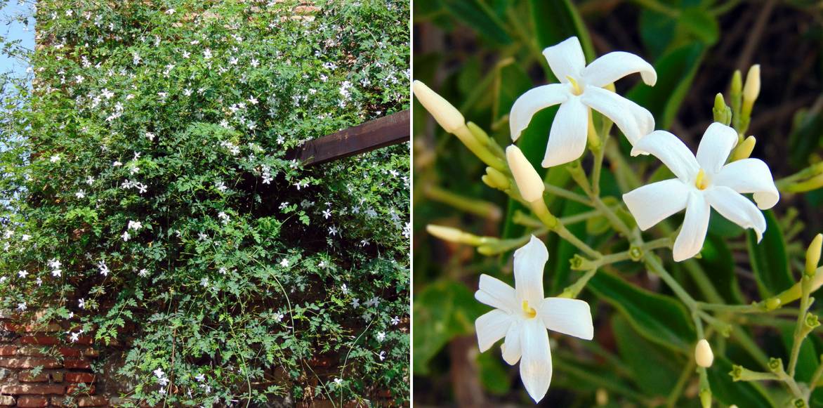 Le jasmin est idéal pour habiller murs, pergolas, s’enrouler sur une clôture ou grimper à l’assaut d’un arbre notamment en compagnie d’une autre grimpante comme un rosier ou une clématite.