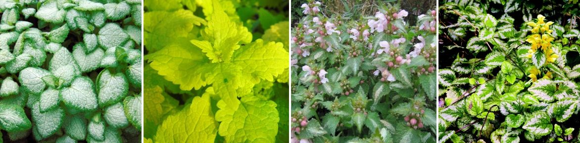 Les Lamium ou Lamiers sont des vivaces couvre-sol intéressantes pour leur floraison et leur joli feuillage caduc doré ou argenté qui éclairent les coins ombragés.  Le feuillage ample et dentelé de certaines espèces rappellent bien  les orties mais  les fleurs en casque typiques des Lamiacées, roses, blanches, jaunes ou pourpres ne trompent pas sur leur nature d’autant que le feuillage est plutôt doux et agréable au toucher.