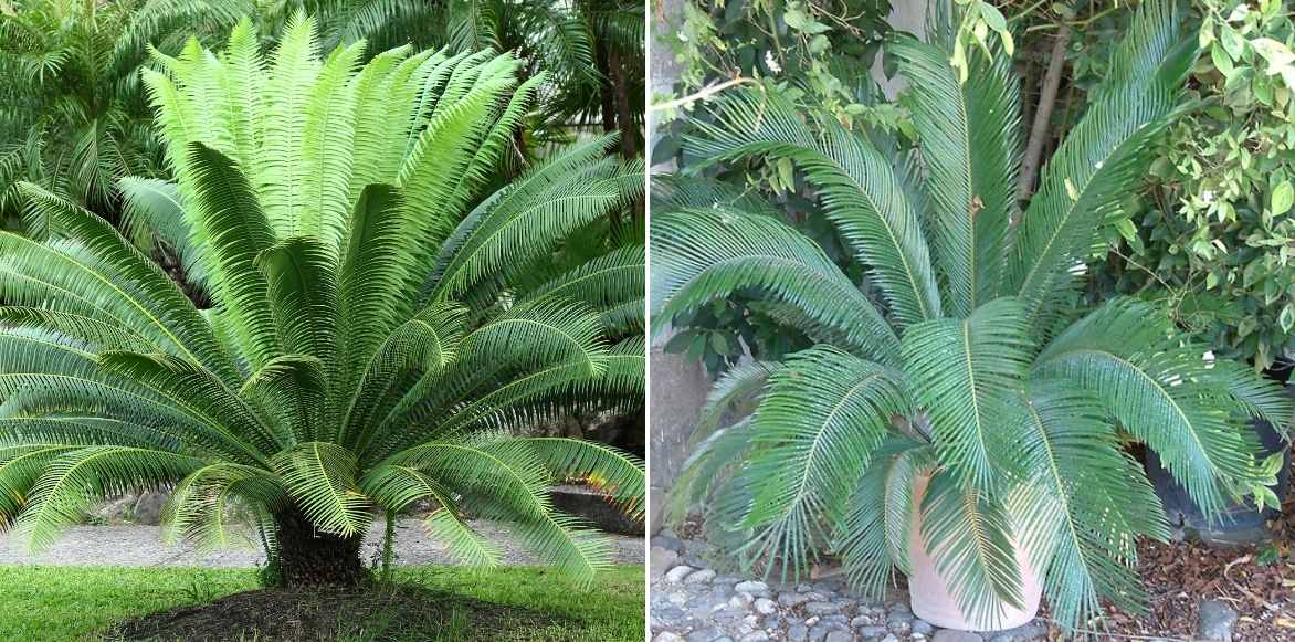 Réservez un emplacement de choix à votre cycas : à gauche en isolé, ou en grande potée à droite (© Alex Lomas)