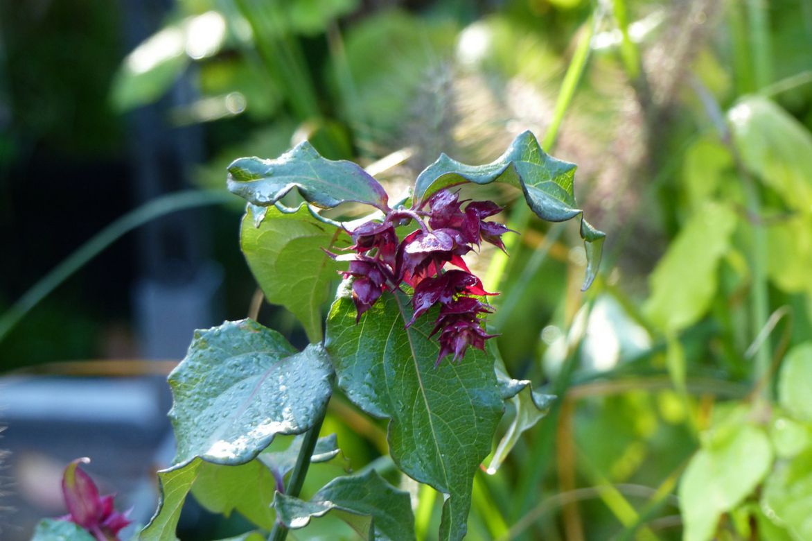 Le Leycesteria, appelé “arbre à faisan” ou encore “chèvrefeuille de l’Himalaya ” que l’on pourrait qualifier d’être à mi-chemin entre l’arbuste et la vivace, appartient à la famille des Caprifoliacées tout comme le chèvrefeuille. Il présente un port arbustif jusqu’à 2 m en tous sens mais ses tiges sont creuses, relativement souples, d’un diamètre limité, avec les extrémités qui meurent avec le passage du froid. Ce comportement oblige à le tailler au début du printemps pour lui refaire une beauté, au moment où les jeunes pousses d’un vert éclatant tranchent avec les parties mortes.